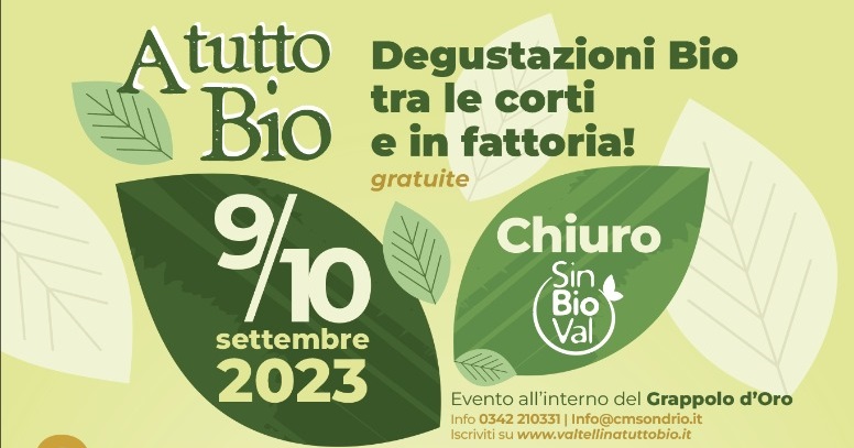 Sabato 9 e domenica 10 settembre, nell’ambito del progetto di Cooperazione Interreg V-A Italia – Svizzera “Sinbioval”, si terrà a Chiuro (SO) la manifestazione “A tutto bio”. Il borgo, con le sue corti storiche e le sue aziende, diventerà teatro di numerose iniziative dedicate alla sostenibilità e all’agricoltura biologica: degustazioni, passeggiate, incontri, visite guidate, giochi per i più piccoli, percorsi che intrecciano temi alimentari con la storia, l’arte, la cultura locale…